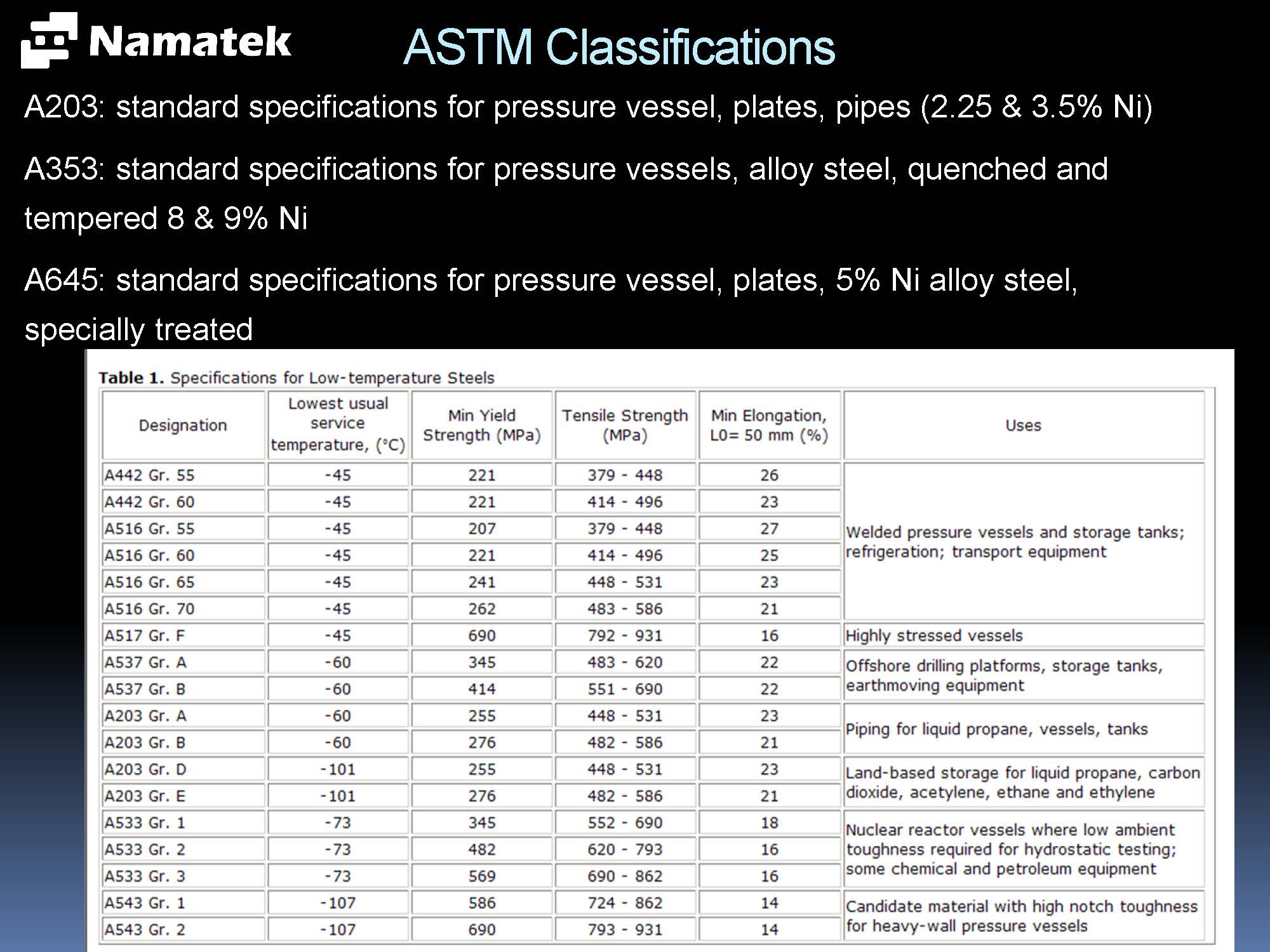 یه سوال داشتم از شما اونم اینکه توی این فایل پیوست یه جدول هست تحت عنوان Table 1. specification for low temperature service , میخواستم بدونم این که جدول از کدوم کتاب یا استاندارد توی جزو آورده شده و آیا برای High temperature service هم همچین جدولی داریم ؟