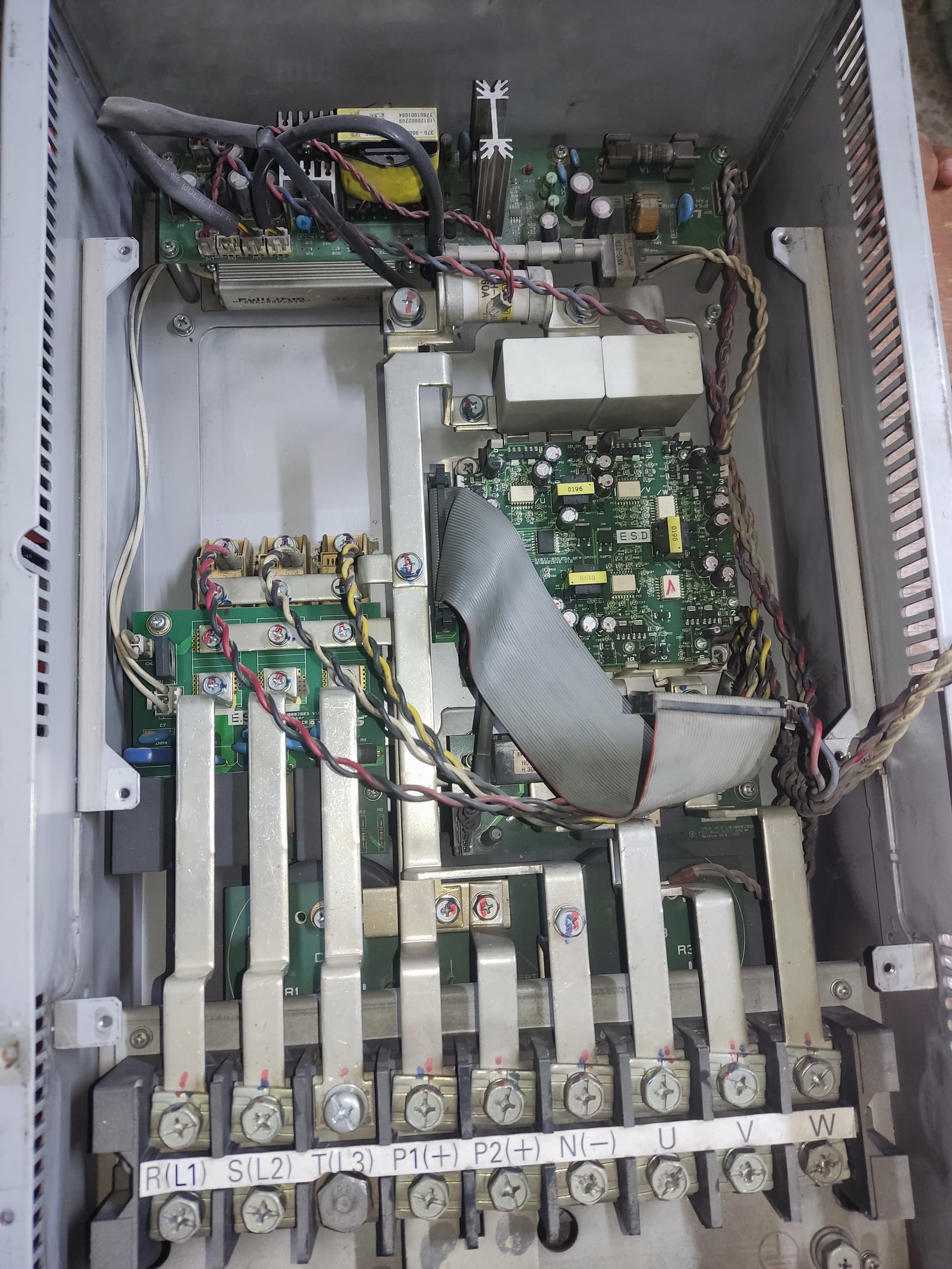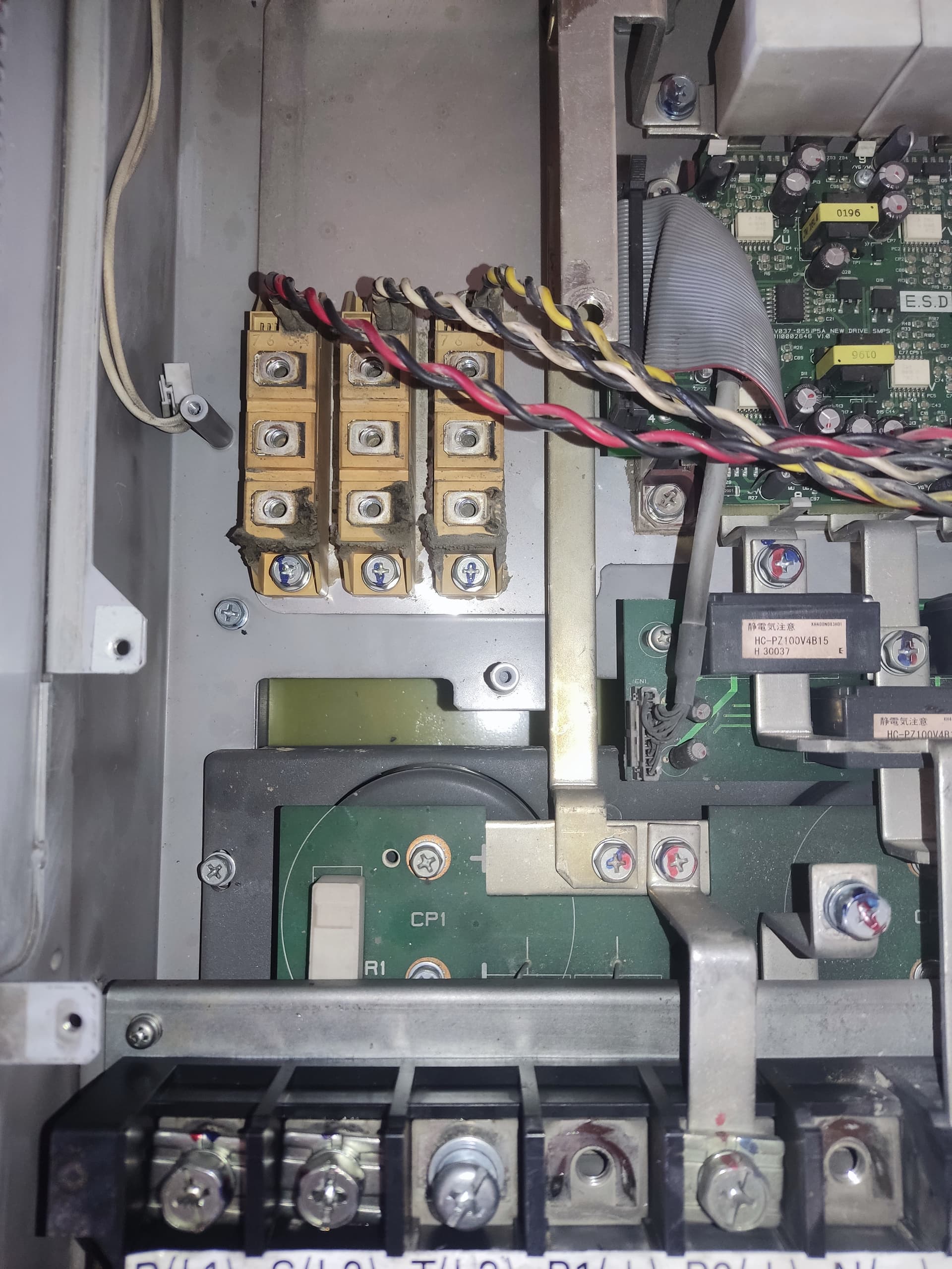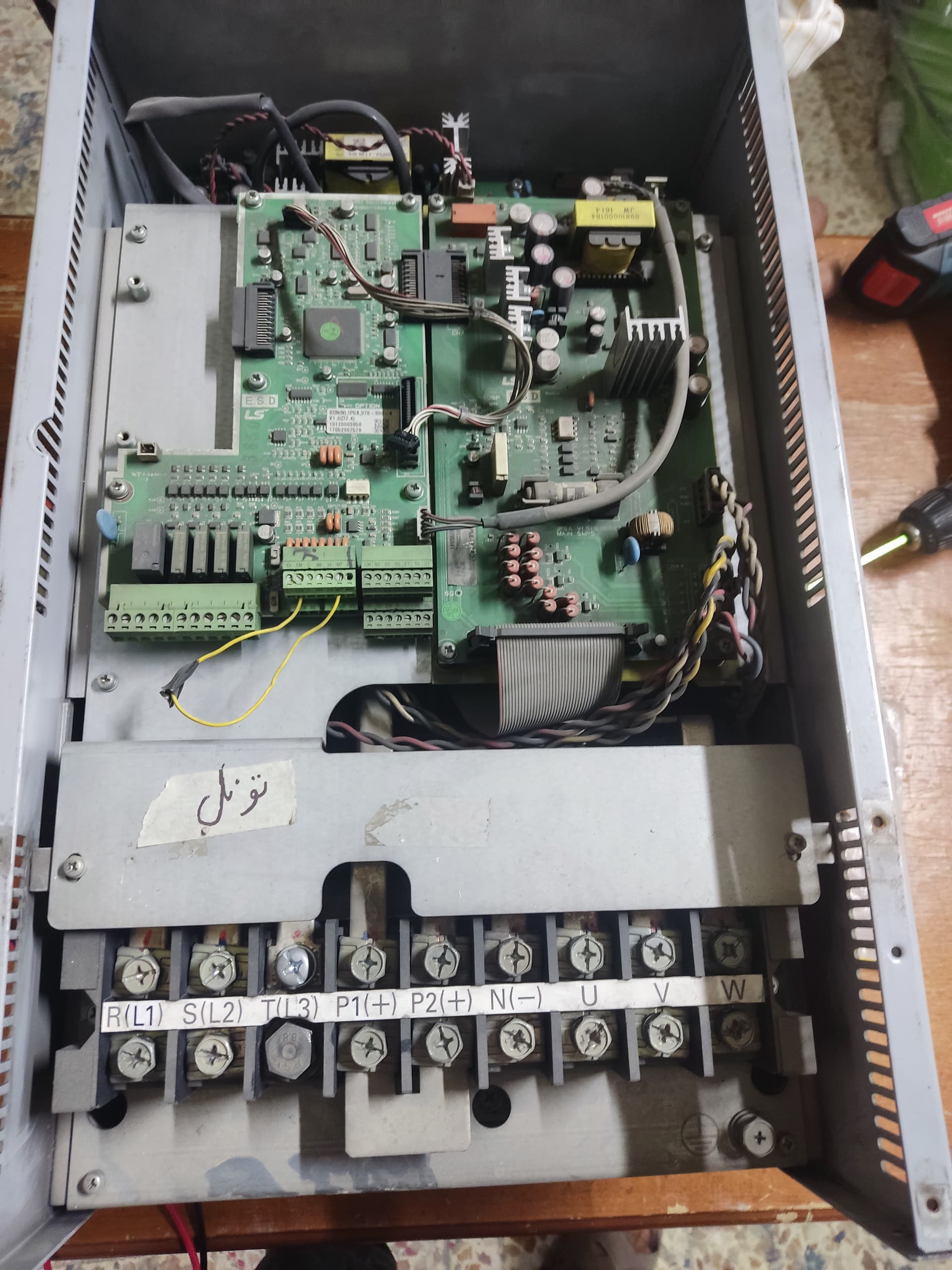 و به علت این که مدتی در انبار افتاده بوده علت خرابی را یادشون رفته، بنده هم تست های اولیه را از ترمینال های قدرت انجام دادم، تست دیودی آی جی بی تی ها خوب بود و سالم بودند ولی تست دیودی پل دیود، سه تا دیود بالا اوکی بود ولی سه تا دیود پایین یکی از ترمینال ها عدد ۰٫۵ را نشون میداد و اون دو تا ترمینال دیگه یعنی ترمینال S, T هیچ عددی نشون نمیداد.