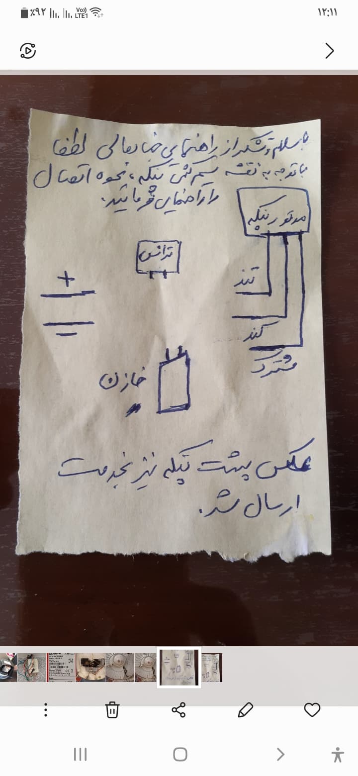 سلام استاد عکس سیم کشی پنکه قدیمی را خدمتتان ار سال می کنم لطف بفرمایید سیم هارا چطور به خازن وکلید متصل کنم باتشکر از راهنمای استاد ارجمند