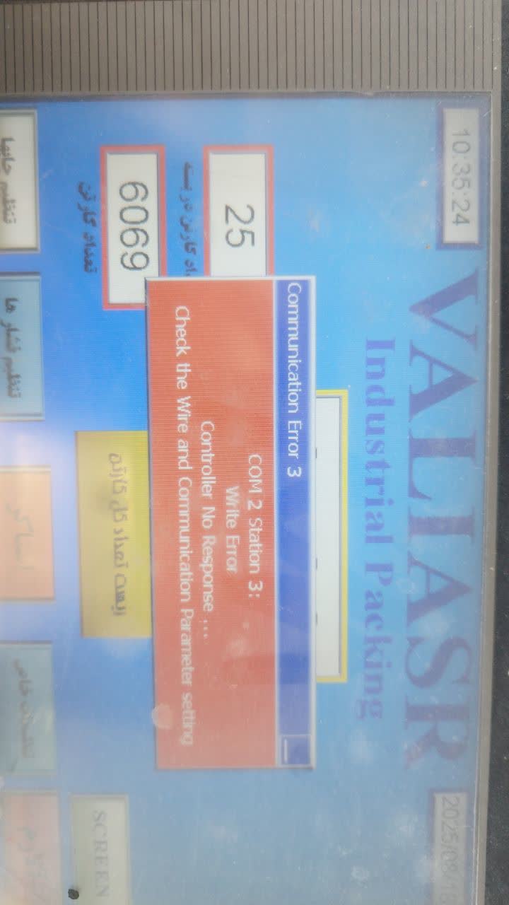 یکی از تابلو های کنترل به مشکل خورده و ارور زیر رو میده: