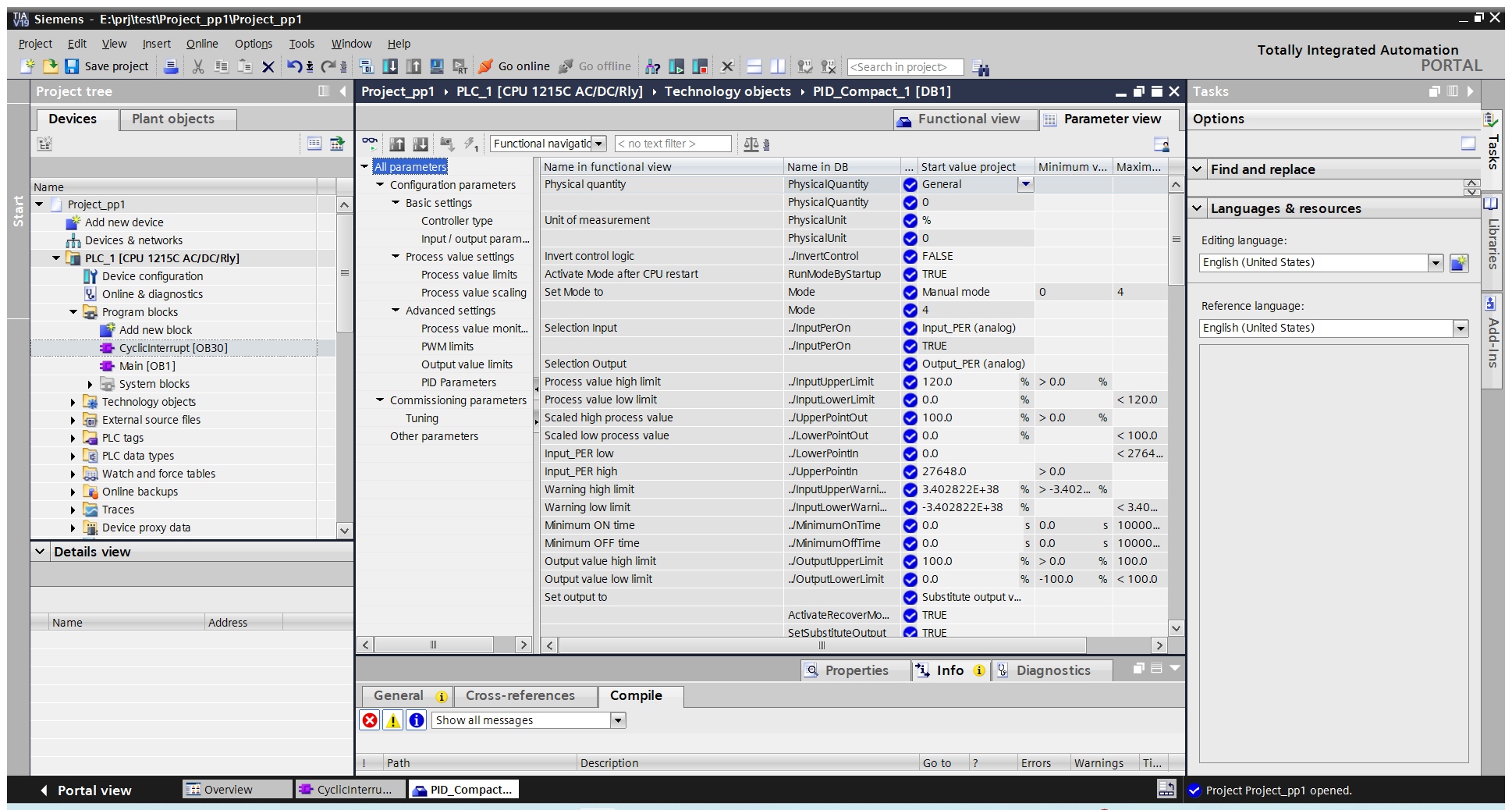 سوالم راجب بلاک pid هست در پی ال سی ۱۲۰۰ و برنامه تیاپورتال ورژن ۱۹