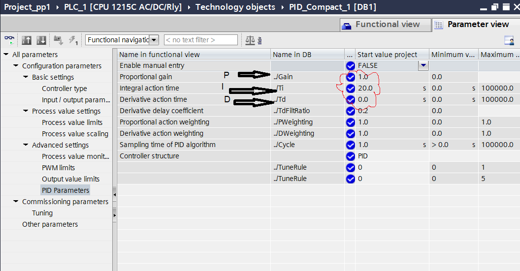 ولی اگه شما میخواهید که از طریق HMI ضرایب در اختیار اپراتور قرار بگیره باید IO field اضافه کنید و تگ مربوطه رو از دیتابلاک PID روی HMI بیارید